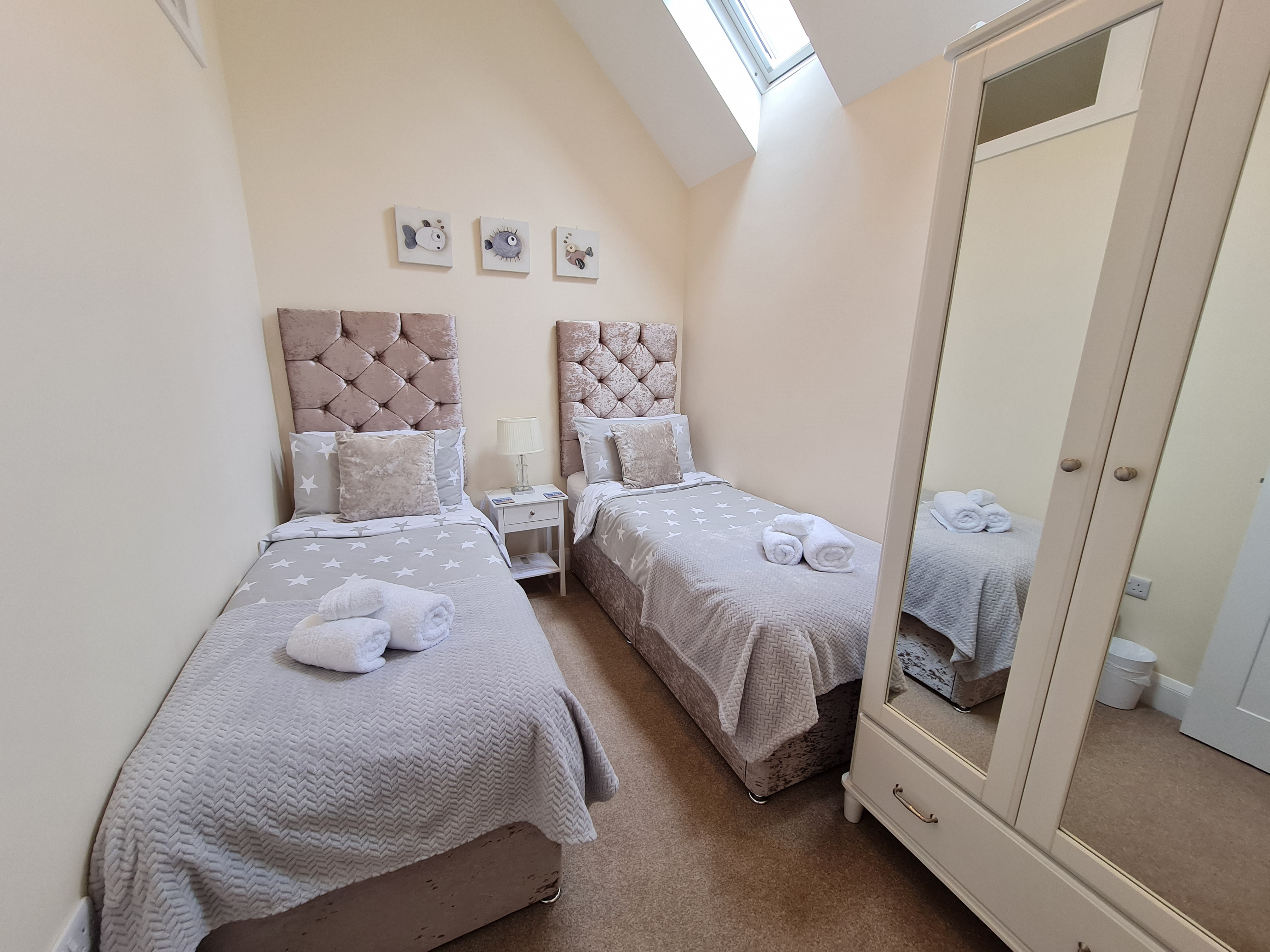 2 Chapel Mews is a 2 bedroom cottage that comfortably sleeps up to four with a king size bed in the master bedroom and twin beds in the second bedroom.
